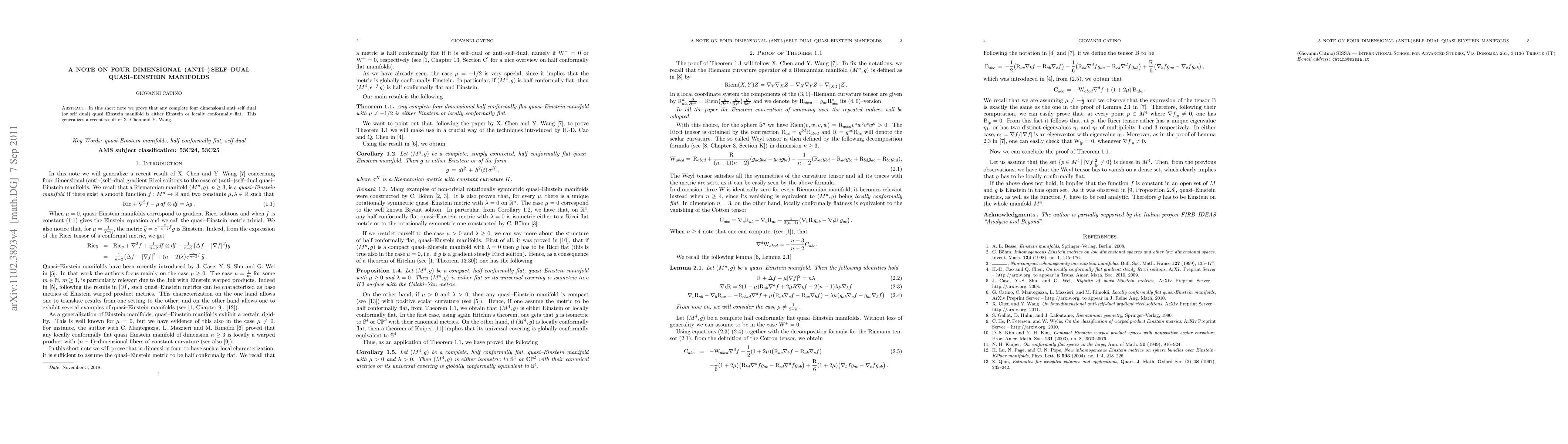 In this short note we prove that any complete four dimensional anti-self-dual (or self-dual) quasi-Einstein manifolds is either Einstein or locally conformally flat. This generalizes a recent result of X. Chen and Y. Wang.