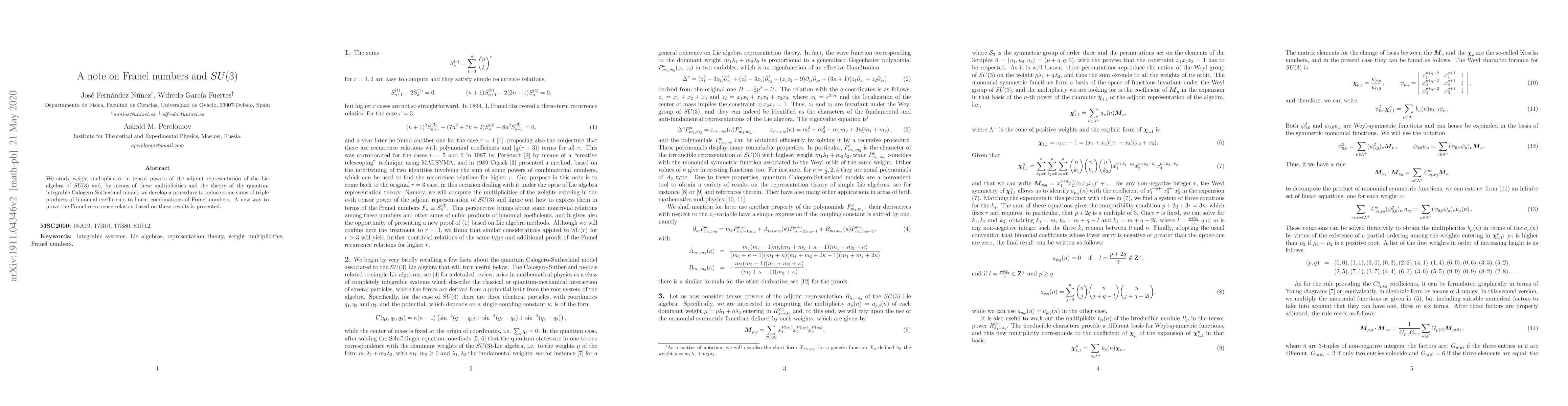 We study weight multiplicities in tensor powers of the adjoint representation of $SU(3)$ and relate them to Franel numbers.