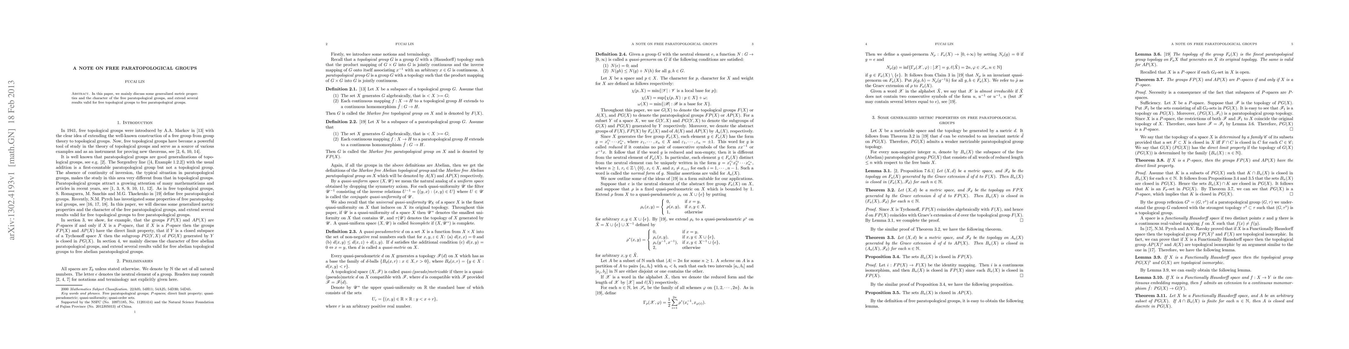 Summary: This paper explores generalized metric properties and characteristics of free paratopological groups, extending several established results from free topological groups to this new context. The focus is on the unique features and implications of these groups within paratopological frameworks.