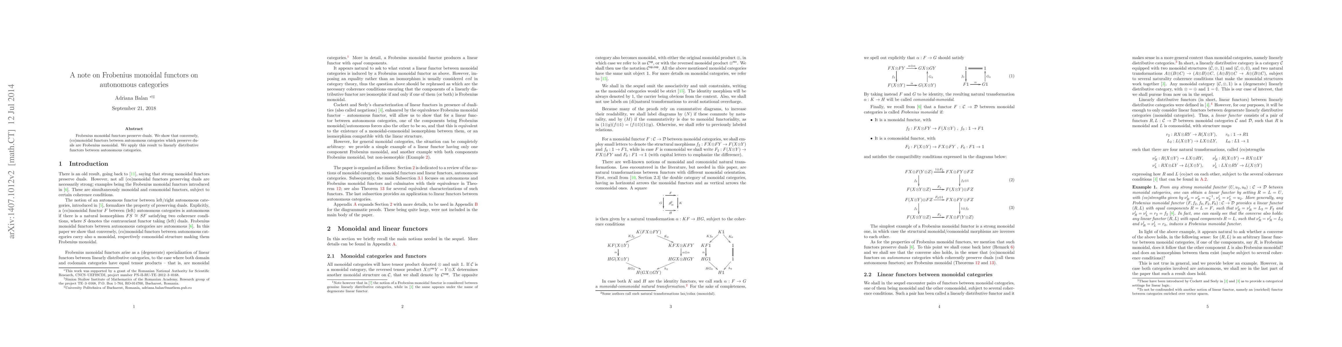 Frobenius monoidal functors preserve duals. We show that conversely, (co)monoidal functors between autonomous categories which preserve duals are Frobenius monoidal. We apply this result to linearly distributive functors between autonomous categories.