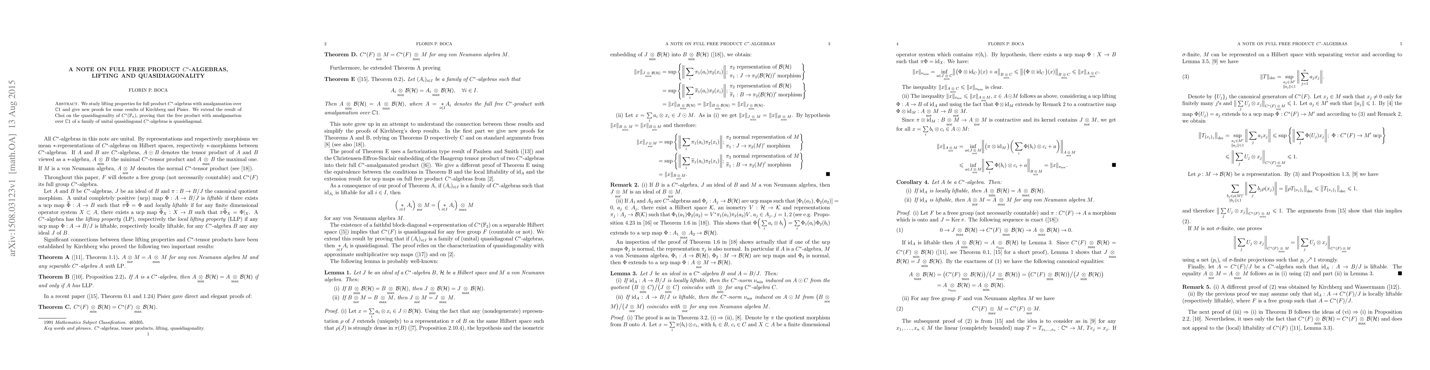 This paper explores lifting properties for full free product C*-algebras amalgamated over ${\mathbb C}1$ and presents new proofs for Kirchberg and Pisier's results. It extends Choi's quasidiagonality proof for $C^*({\mathbb F}_n)$ to show that free product amalgamations of unital quasidiagonal C*-algebras are also quasidiagonal.