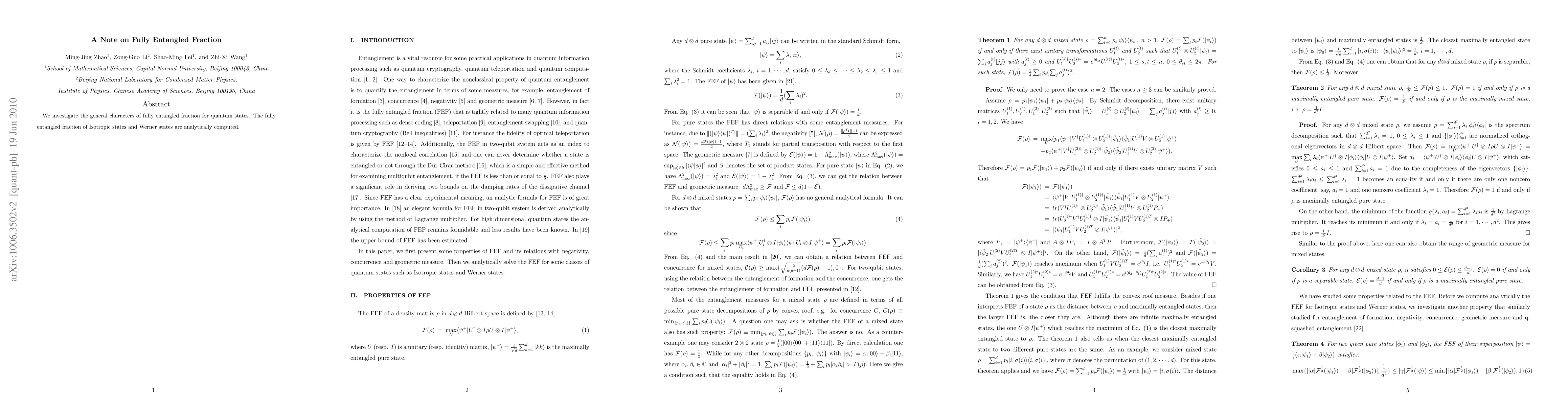 Summary: This paper examines the fully entangled fraction for quantum states, providing analytical computations for Isotropic and Werner states to understand their entanglement characteristics.