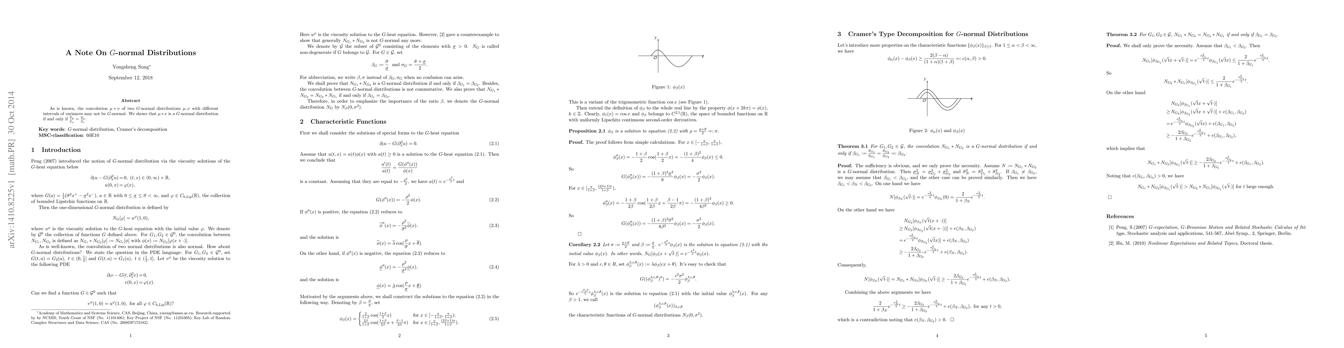 As is known, the convolution $\mu*\nu$ of two $G$-normal distributions $\mu, \nu$ with different intervals of variances may not be $G$-normal. We shows that $\mu*\nu$ is a $G$-normal distribution if and only if $\frac{\overline{\sigma}_\mu}{\underline{\sigma}_\mu}=\frac{\overline{\sigma}_\nu}{\underline{\sigma}_\nu}$.