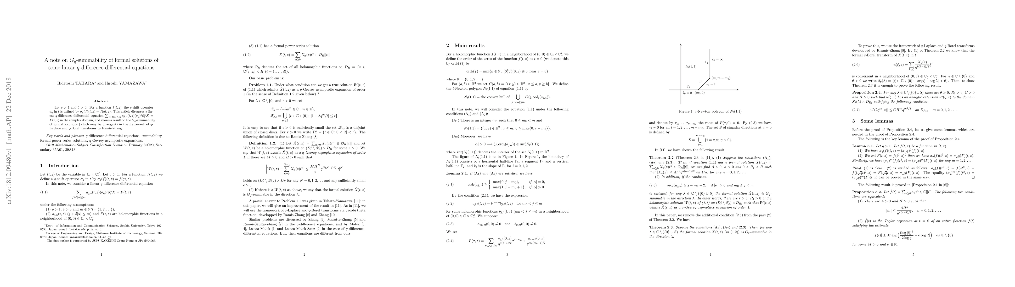 This paper explores the $G_q$-summability of formal solutions for certain linear $q$-difference-differential equations and enhances the summability criteria established in a previous work by Tahara and Yamazawa.