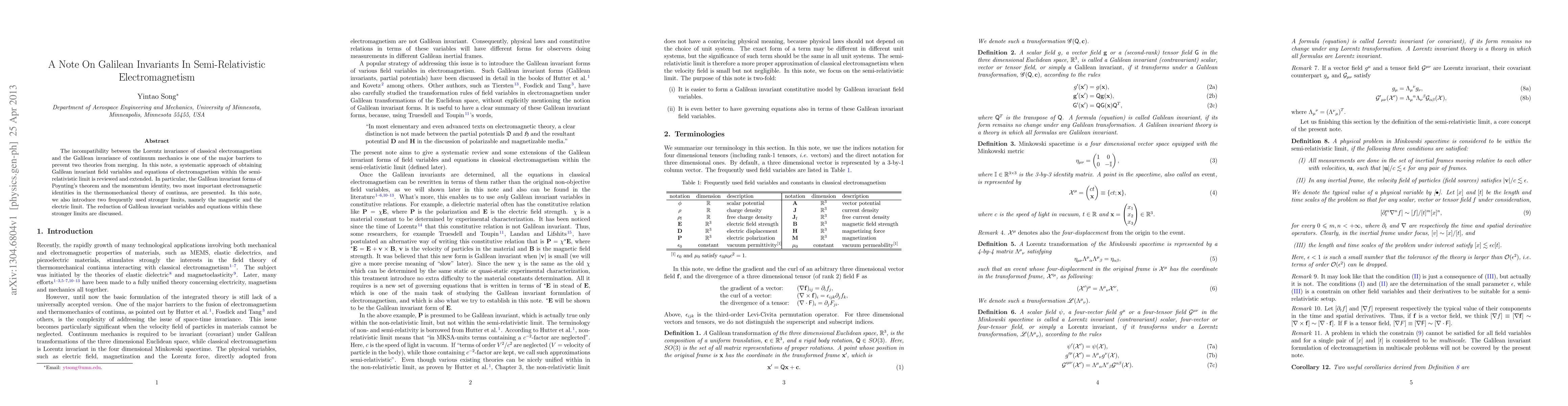 The novelty of this work lies in its detailed examination of Galilean invariants within the semi-relativistic limit and the introduction of magnetic and electric limits, providing a more nuanced understanding of merging classical electromagnetism and continuum mechanics.