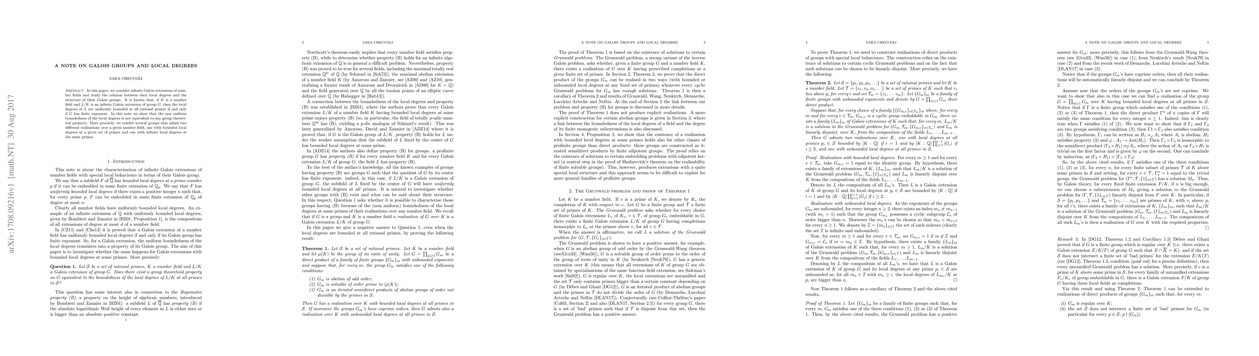In this paper, we consider infinite Galois extensions of number fields and study the relation between their local degrees and the structure of their Galois groups. It is known that, if $K$ is a number field and $L/K$ is an infinite Galois extension of group $G$, then the local degrees of $L$ are uniformly bounded at all rational primes if and only if $G$ has finite exponent. In this note we show that the non uniform boundedness of the local degrees is not equivalent to any group theoretical property. More precisely, we exhibit several groups that admit two different realisations over a given number field, one with bounded local degrees at a given set of primes and one with infinite local degrees at the same primes.