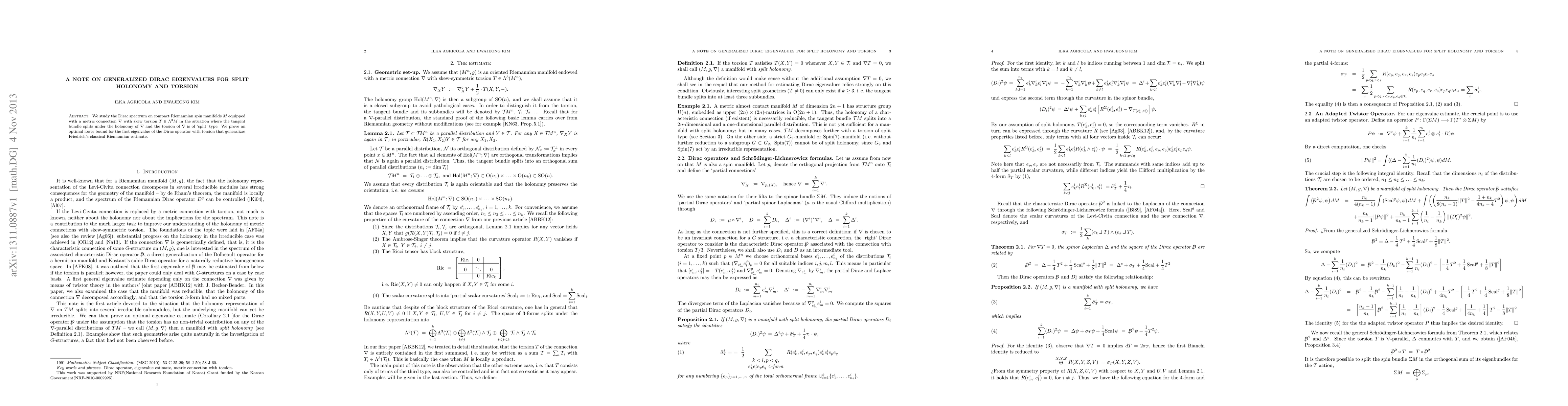 We study the Dirac spectrum on compact Riemannian spin manifolds $M$ equipped with a metric connection $\nabla$ with skew torsion $T\in\Lambda^3 M$ in the situation where the tangent bundle splits under the holonomy of $\nabla$ and the torsion of $\nabla$ is of `split' type. We prove an optimal lower bound for the first eigenvalue of the Dirac operator with torsion that generalizes Friedrich's classical Riemannian estimate.