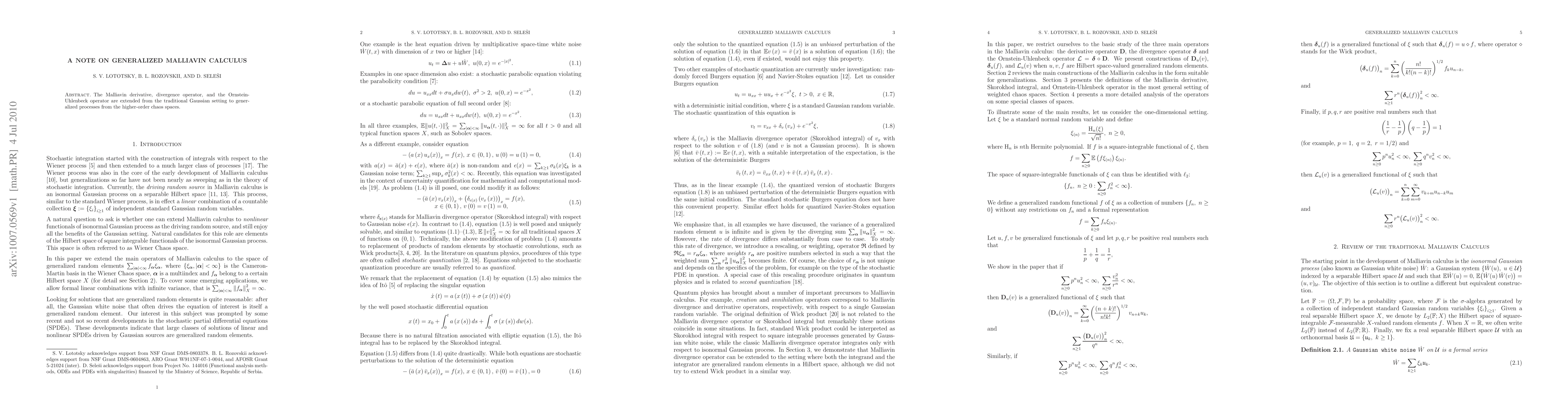 The Malliavin derivative, divergence operator, and the Ornstein-Uhlenbeck operator are extended from the traditional Gaussian setting to generalized processes from the higher-order chaos spaces.