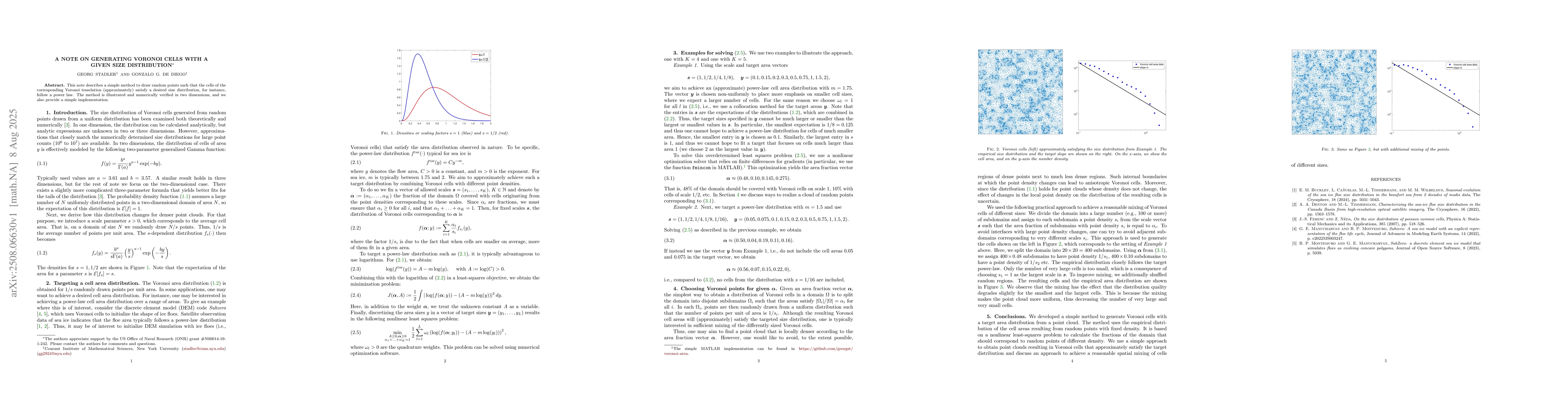 The paper presents a method to generate Voronoi cells with a given size distribution, specifically targeting a power-law distribution. This is achieved by combining Voronoi cells with different point densities, fixed through a vector of allowed scales. The approach involves a least-squares optimization problem to determine the fractions of the domain covered by cells of different scales.