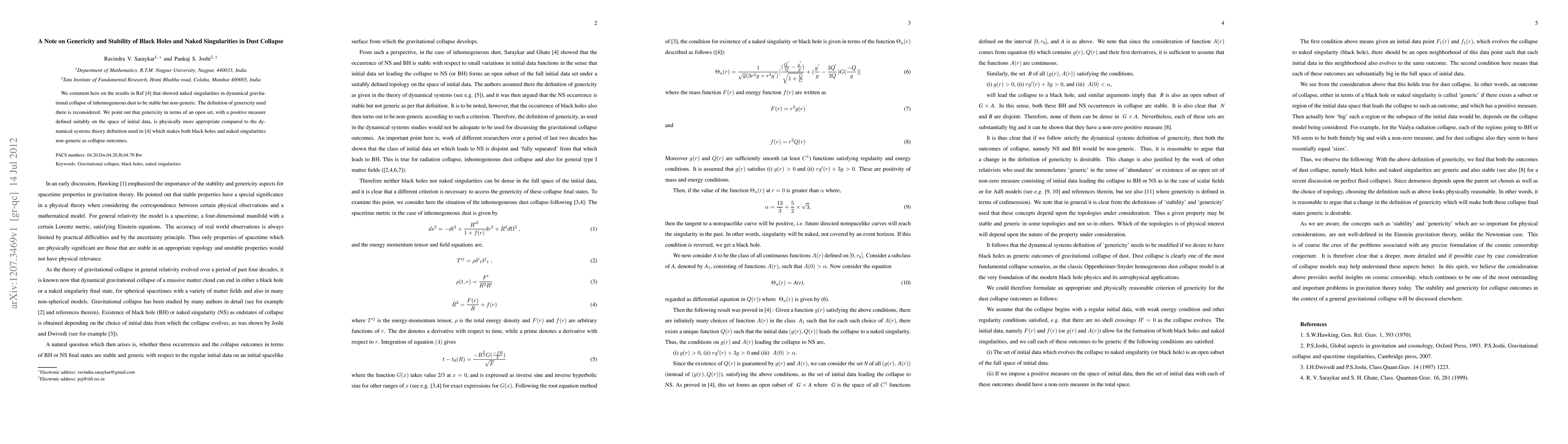 We comment here on the results in Ref [4] that showed naked singularities in dynamical gravitational collapse of inhomogeneous dust to be stable but non-generic. The definition of genericity used there is reconsidered. We point out that genericity in terms of an open set, with a positive measure defined suitably on the space of initial data, is physically more appropriate compared to the dynamical systems theory definition used in [4] which makes both black holes and naked singularities non-generic as collapse outcomes.