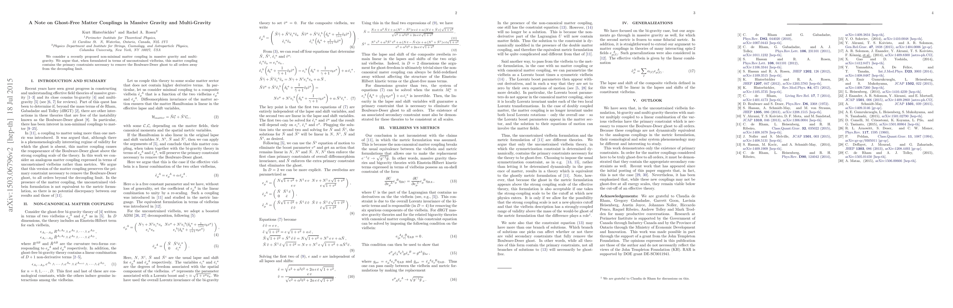 Summary: This paper discusses a new non-minimal matter coupling in massive gravity and multi-gravity, demonstrating that when expressed using unconstrained vielbeins, it incorporates the necessary primary constraints to eliminate the Boulware-Deser ghost at all orders, except near the decoupling limit.