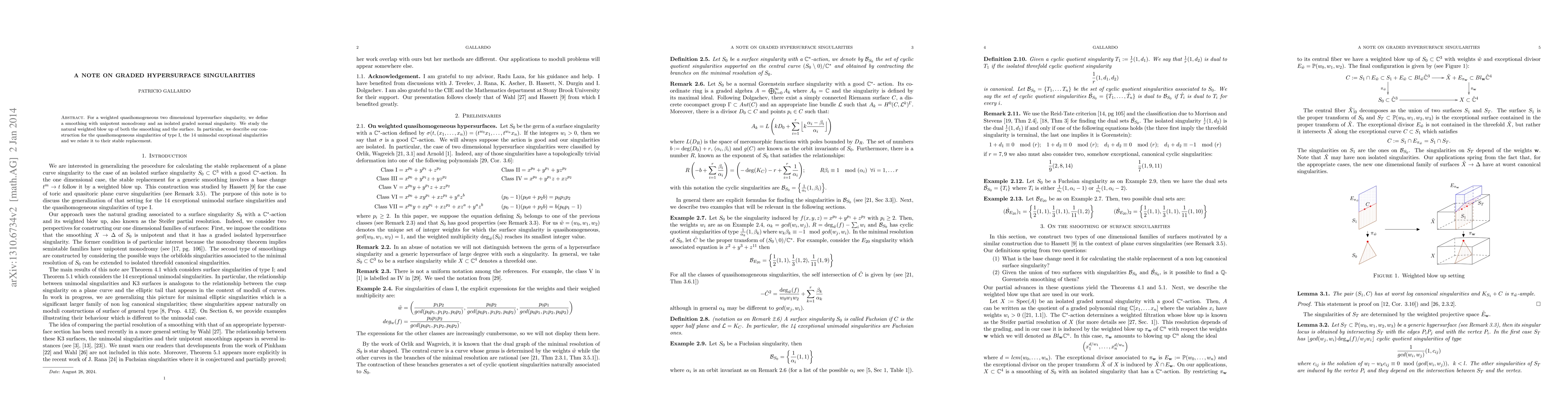 For a weighted quasihomogeneous two dimensional hypersurface singularity, we define a smoothing with unipotent monodromy and an isolated graded normal singularity. We study the natural weighted blow up of both the smoothing and the surface. In particular, we describe our construction for the quasihomogeneous singularities of type I, the 14 unimodal exceptional singularities and we relate it to their stable replacement.