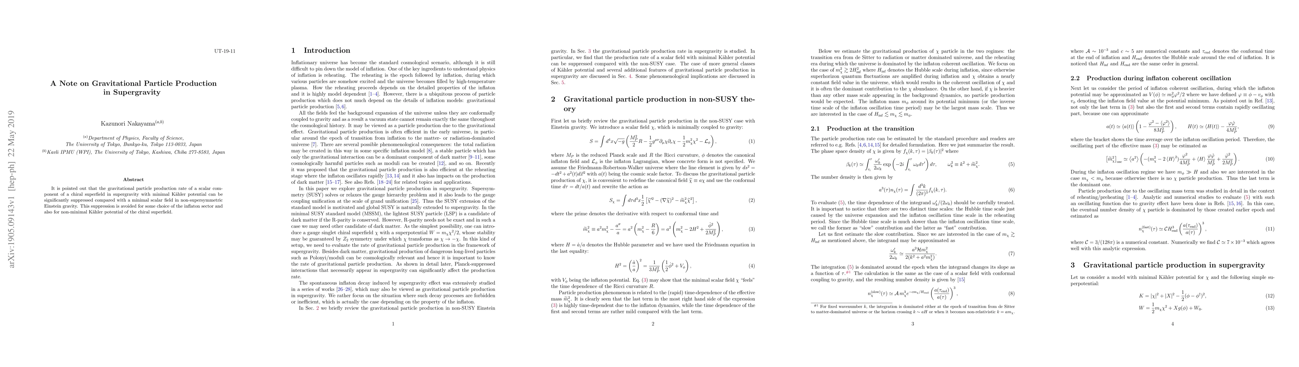 Research shows that gravitational particle production can be significantly suppressed in supergravity scenarios, but certain choices of the inflaton sector and non-minimal Kahler potential may avoid this suppression.