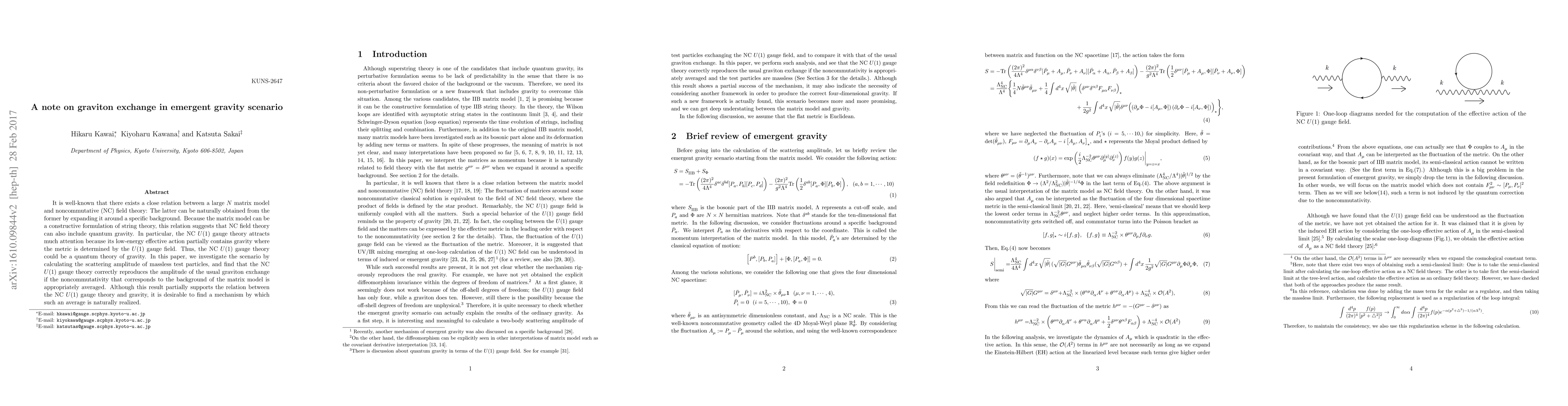 It is well-known that there exists a close relation between a large $N$ matrix model and noncommutative (NC) field theory: The latter can be naturally obtained from the former by expanding it around a specific background. Because the matrix model can be a constructive formulation of string theory, this relation suggests that NC field theory can also include quantum gravity. In particular, the NC $U(1)$ gauge theory attracts much attention because its low-energy effective action partially contains gravity where the metric is determined by the $U(1)$ gauge field. Thus, the NC $U(1)$ gauge theory could be a quantum theory of gravity. In this paper, we investigate the scenario by calculating the scattering amplitude of massless test particles, and find that the NC $U(1)$ gauge theory correctly reproduces the amplitude of the usual graviton exchange if the noncommutativity that corresponds to the background of the matrix model is appropriately averaged. Although this result partially supports the relation between the NC $U(1)$ gauge theory and gravity, it is desirable to find a mechanism by which such an average is naturally realized.