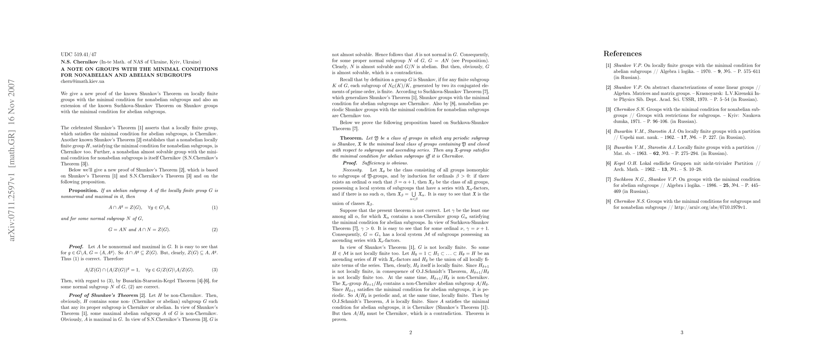Summary: This paper provides a new proof for Shunkov's Theorem concerning locally finite groups with minimal nonabelian subgroups and extends the Suchkova-Shunkov Theorem to include minimal conditions for abelian subgroups.