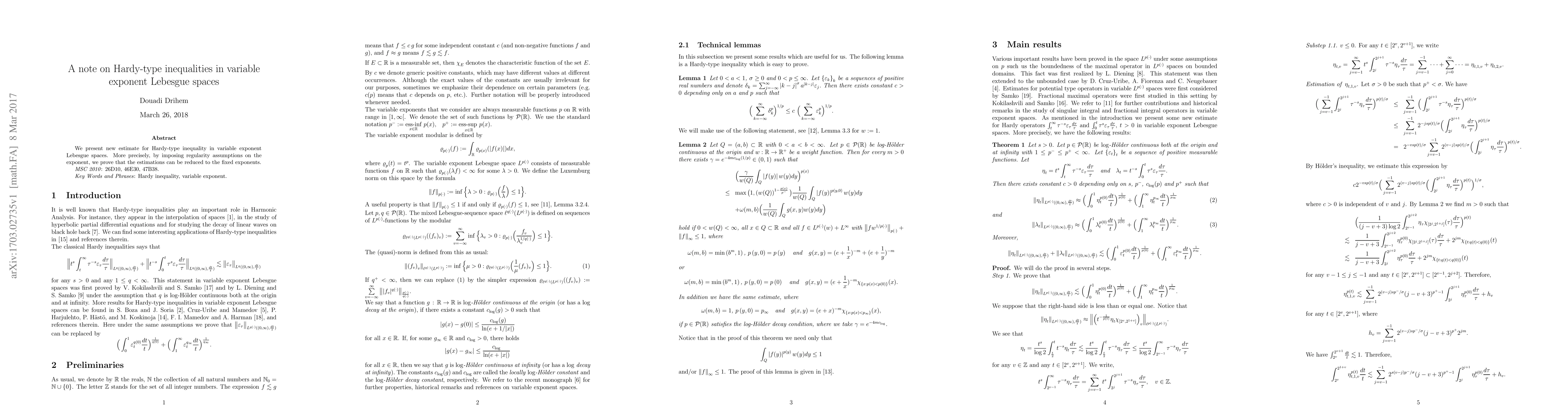 Summary: This paper introduces new estimates for Hardy-type inequalities in variable exponent Lebesgue spaces, demonstrating that under certain regularity conditions on the exponent, these estimates can be simplified to those applicable in fixed exponent Lebesgue spaces.