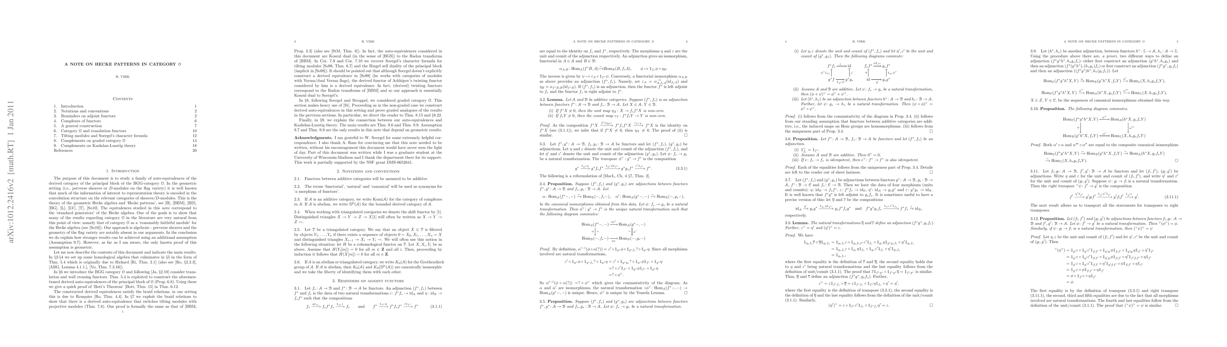We study the family of derived auto-equivalences of the BGG-category O that correspond to the action of the standard generators of the Hecke algebra. Both the non-graded and graded situations are considered.
