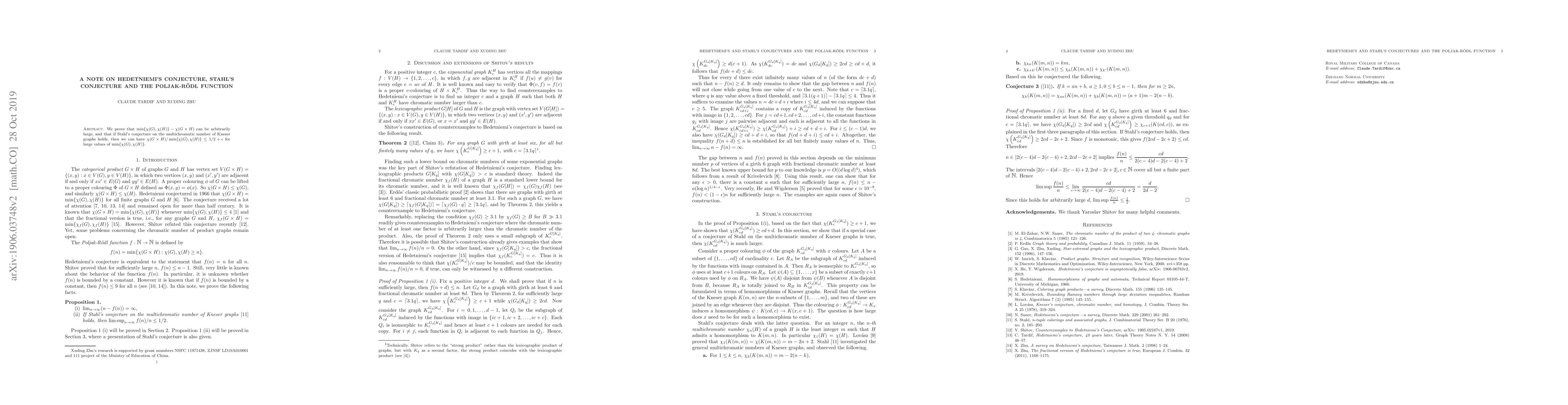 Researchers prove that the difference between chromatic numbers of graphs G and H can be arbitrarily large, while also showing a potential bound on this difference when Stahl's conjecture holds, which could have implications for understanding graph coloring.