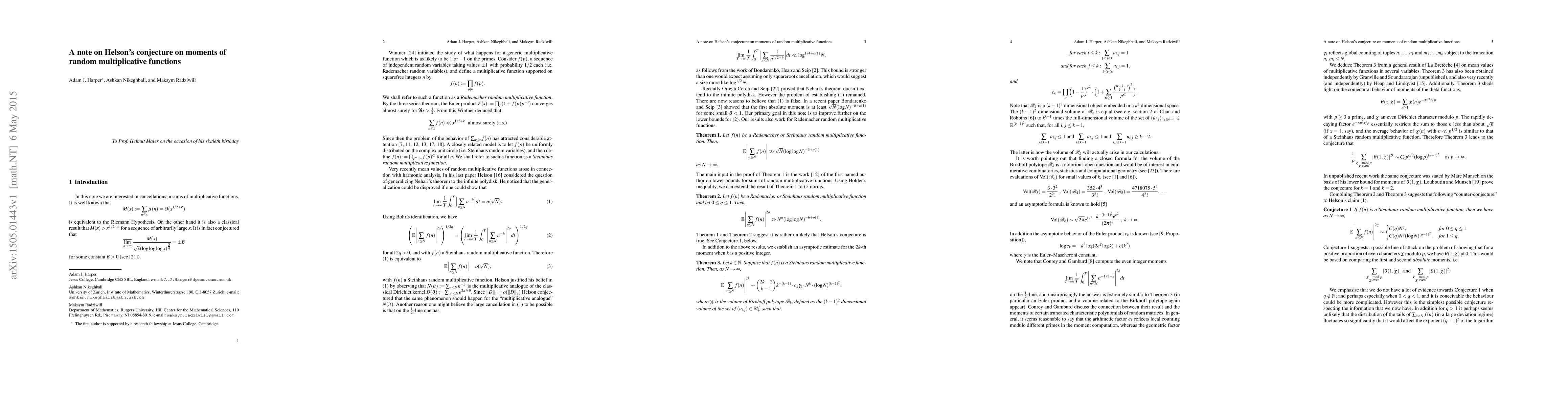 This paper provides improved lower bounds for the small moments of the sum of a random multiplicative function, advancing progress towards resolving Helson's conjecture. It also establishes asymptotics for even integer moments, employing techniques from random multiplicative functions, mean value results, and Birkhoff polytopes.