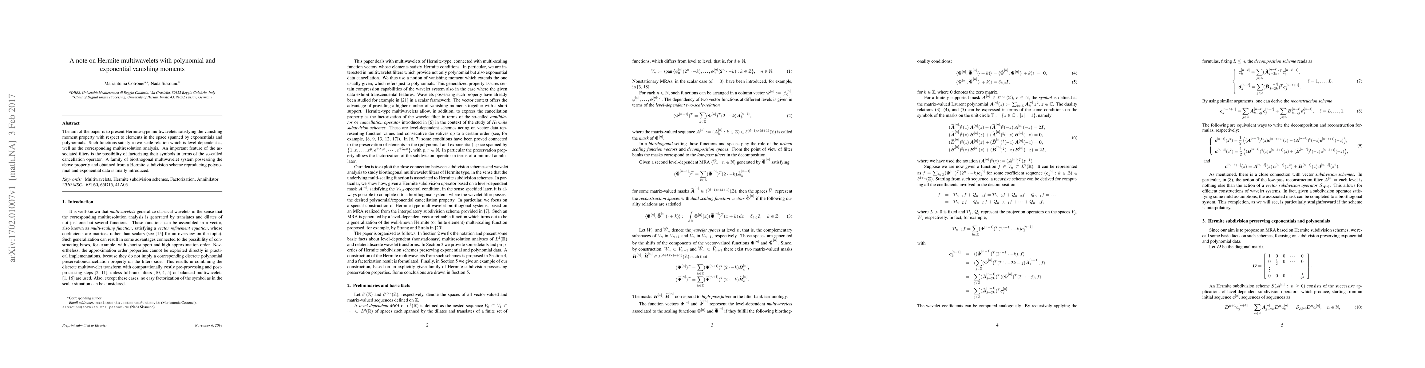 This paper introduces Hermite-type multiwavelets with vanishing moments for both polynomials and exponentials, showcasing a two-scale relation and multiresolution analysis. It also explores the factorization of associated filters using the cancellation operator.