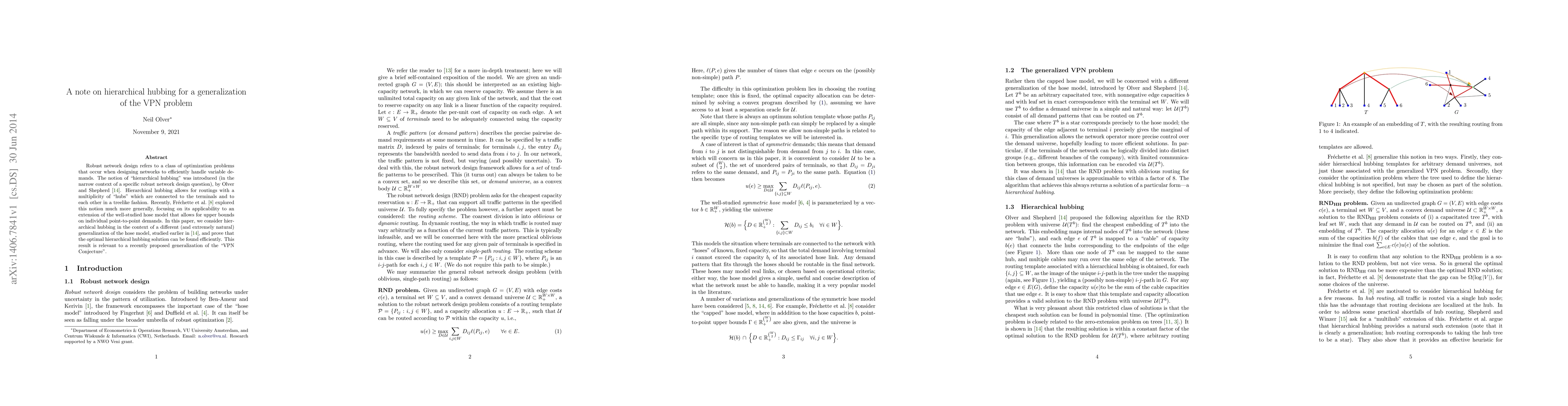 Robust network design refers to a class of optimization problems that occur when designing networks to efficiently handle variable demands. The notion of "hierarchical hubbing" was introduced (in the narrow context of a specific robust network design question), by Olver and Shepherd [2010]. Hierarchical hubbing allows for routings with a multiplicity of "hubs" which are connected to the terminals and to each other in a treelike fashion. Recently, Fr\'echette et al. [2013] explored this notion much more generally, focusing on its applicability to an extension of the well-studied hose model that allows for upper bounds on individual point-to-point demands. In this paper, we consider hierarchical hubbing in the context of a previously studied (and extremely natural) generalization of the hose model, and prove that the optimal hierarchical hubbing solution can be found efficiently. This result is relevant to a recently proposed generalization of the "VPN Conjecture".