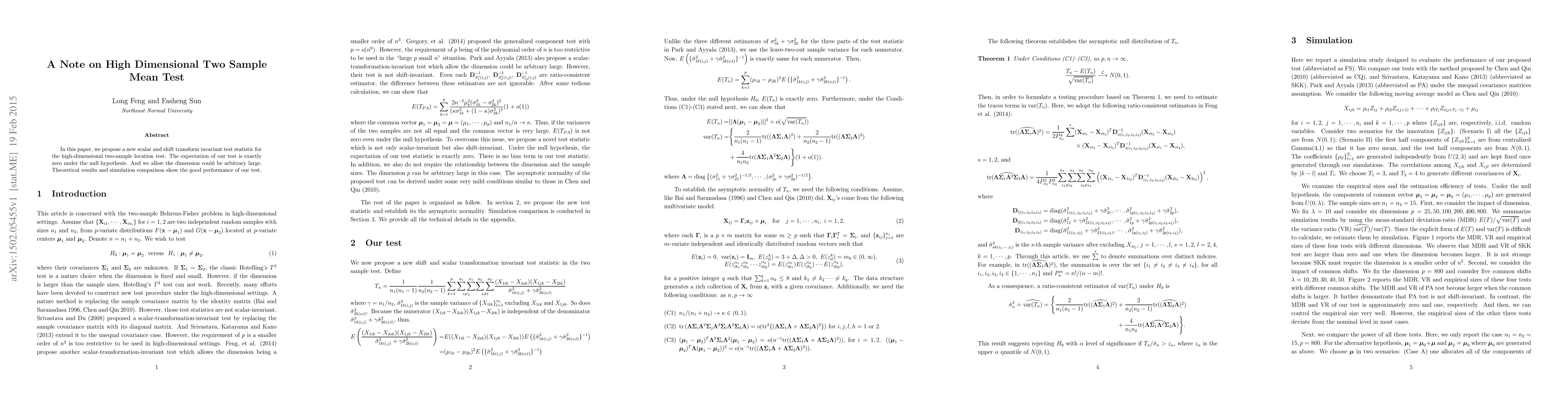 In this paper, we propose a new scalar and shift transform invariant test statistic for the high-dimensional two-sample location test. The expectation of our test is exactly zero under the null hypothesis. And we allow the dimension could be arbitrary large. Theoretical results and simulation comparison show the good performance of our test.
