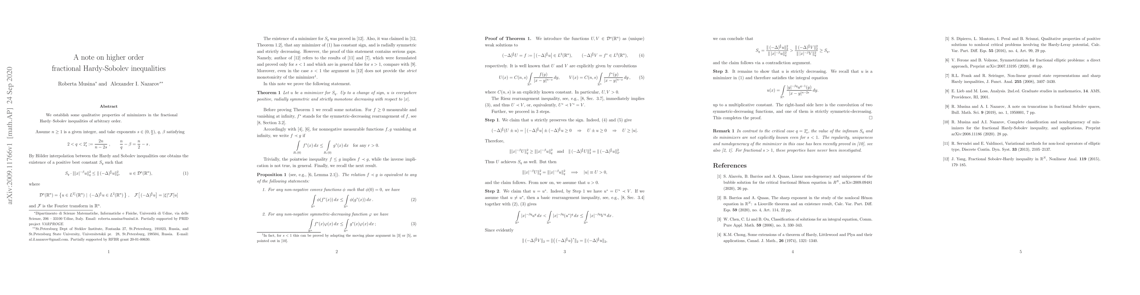 Summary: This paper investigates the qualitative properties of minimizers in fractional Hardy-Sobolev inequalities of any order, establishing new insights into their behavior. The findings contribute to the understanding of higher-order fractional inequalities in mathematical analysis.
