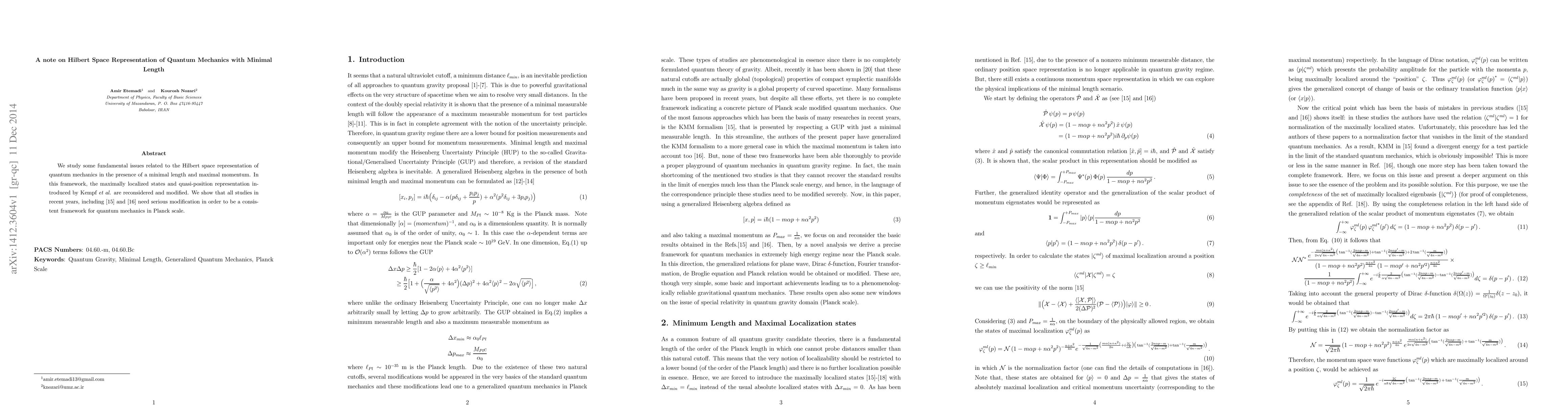 This paper examines the Hilbert space representation of quantum mechanics incorporating a minimal length and maximal momentum, revisiting and modifying the maximally localized states and quasi-position representation. It argues that recent studies, including those referenced, require significant modifications to form a coherent framework at the Planck scale.