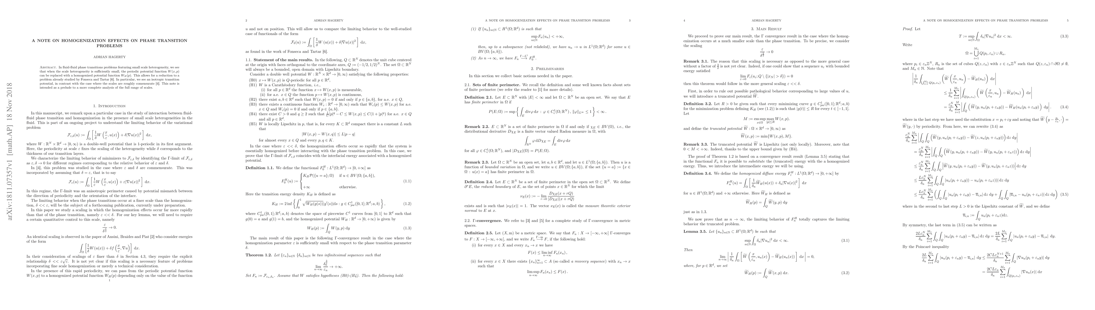 In fluid-fluid phase transitions problems featuring small scale heterogeneity, we see that when the scale heterogeneity is sufficiently small, the periodic potential function $W(x,p)$ can be replaced with a homogenized potential function $W_H(p)$. This allows for a reduction to a problem already studied by Fonseca and Tartar. In particular, we see an isotropic transition potential, in contrast with the case where the scales are roughly comensurate. This note is intended as a prelude to a more complete analysis of the full range of scales.