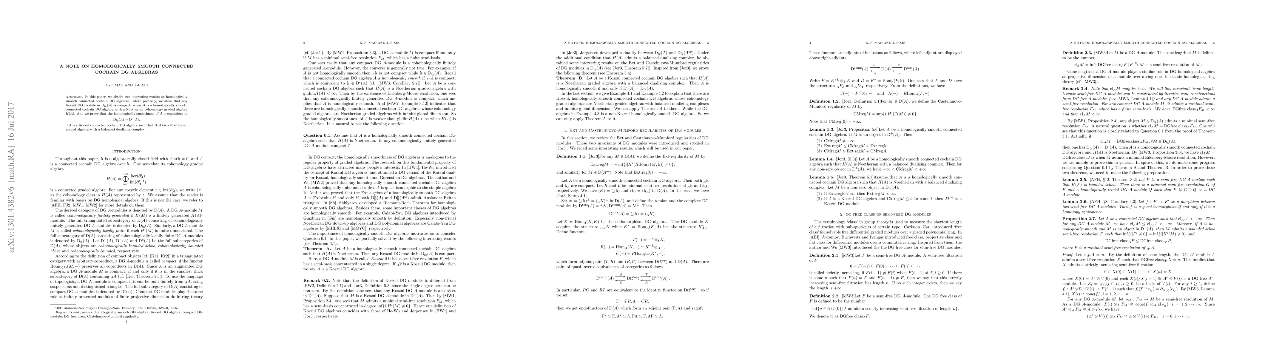 In this paper, we obtain two interesting results on homologically smooth connected cochain DG algebras. More precisely, we show that any Koszul DG module in $\mathrm{D_{fg}}(A)$ is compact, when $A$ is a homologically smooth connected cochain DG algebra with a Noetherian cohomology graded algebra $H(A)$. And we prove that the homologically smoothness of $A$ is equivalent to $$\mathrm{D_{fg}}(A)=\mathrm{D}^c(A),$$ if $A$ is a Koszul connected cochain DG algebra such that $H(A)$ is a Noetherian graded algebra with a balanced dualizing complex.