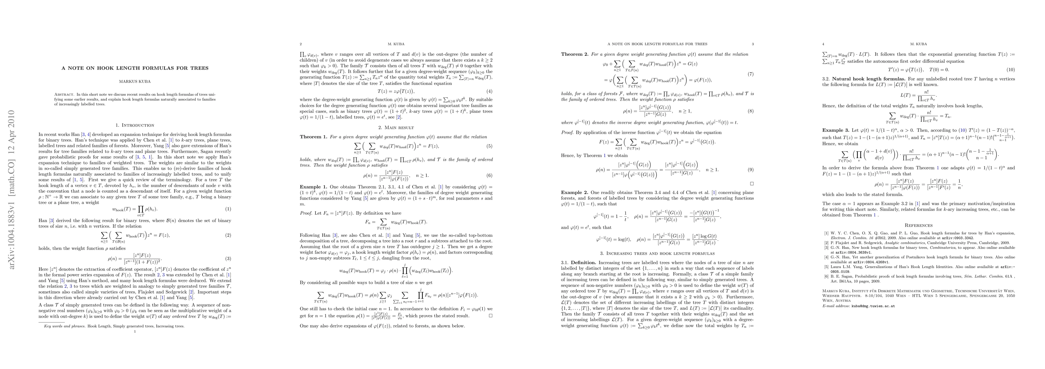 In this short note we discuss recent results on hook length formulas of trees unifying some earlier results, and explain hook length formulas naturally associated to families of increasingly labelled trees.