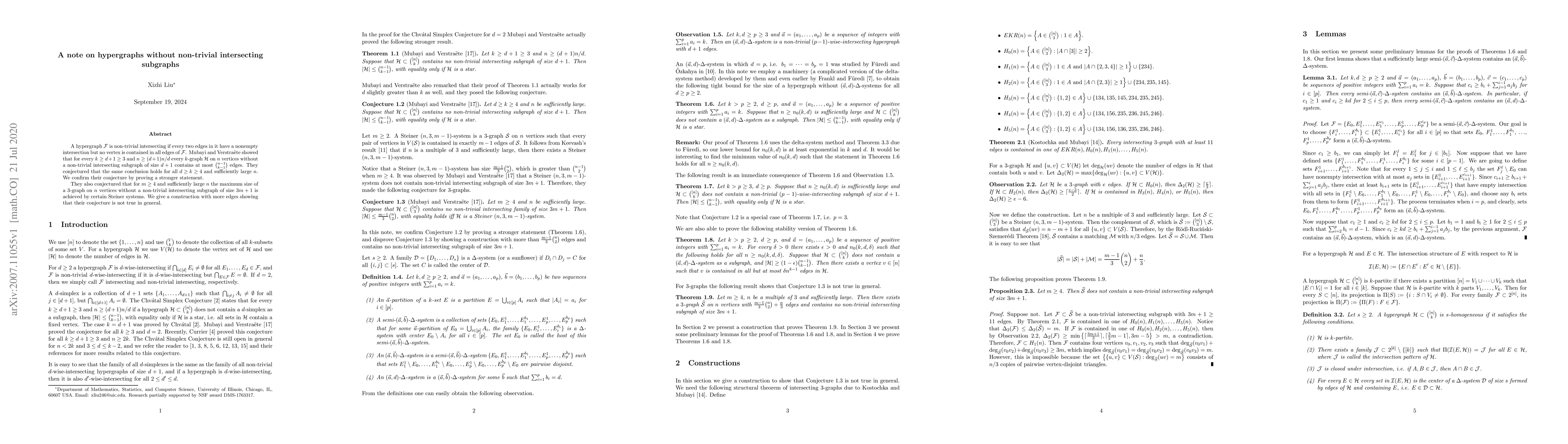 A hypergraph $\mathcal{F}$ is non-trivial intersecting if every two edges in it have a nonempty intersection but no vertex is contained in all edges of $\mathcal{F}$. Mubayi and Verstra\"{e}te showed that for every $k \ge d+1 \ge 3$ and $n \ge (d+1)n/d$ every $k$-graph $\mathcal{H}$ on $n$ vertices without a non-trivial intersecting subgraph of size $d+1$ contains at most $\binom{n-1}{k-1}$ edges. They conjectured that the same conclusion holds for all $d \ge k \ge 4$ and sufficiently large $n$. We confirm their conjecture by proving a stronger statement. They also conjectured that for $m \ge 4$ and sufficiently large $n$ the maximum size of a $3$-graph on $n$ vertices without a non-trivial intersecting subgraph of size $3m+1$ is achieved by certain Steiner systems. We give a construction with more edges showing that their conjecture is not true in general.