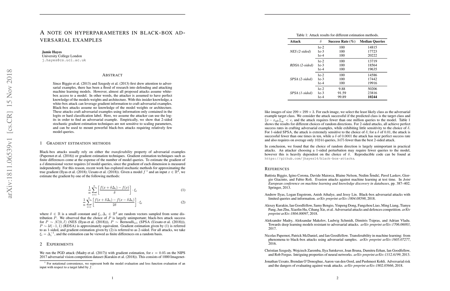 Since Biggio et al. (2013) and Szegedy et al. (2013) first drew attention to adversarial examples, there has been a flood of research into defending and attacking machine learning models. However, almost all proposed attacks assume white-box access to a model. In other words, the attacker is assumed to have perfect knowledge of the models weights and architecture. With this insider knowledge, a white-box attack can leverage gradient information to craft adversarial examples. Black-box attacks assume no knowledge of the model weights or architecture. These attacks craft adversarial examples using information only contained in the logits or hard classification label. Here, we assume the attacker can use the logits in order to find an adversarial example. Empirically, we show that 2-sided stochastic gradient estimation techniques are not sensitive to scaling parameters, and can be used to mount powerful black-box attacks requiring relatively few model queries.