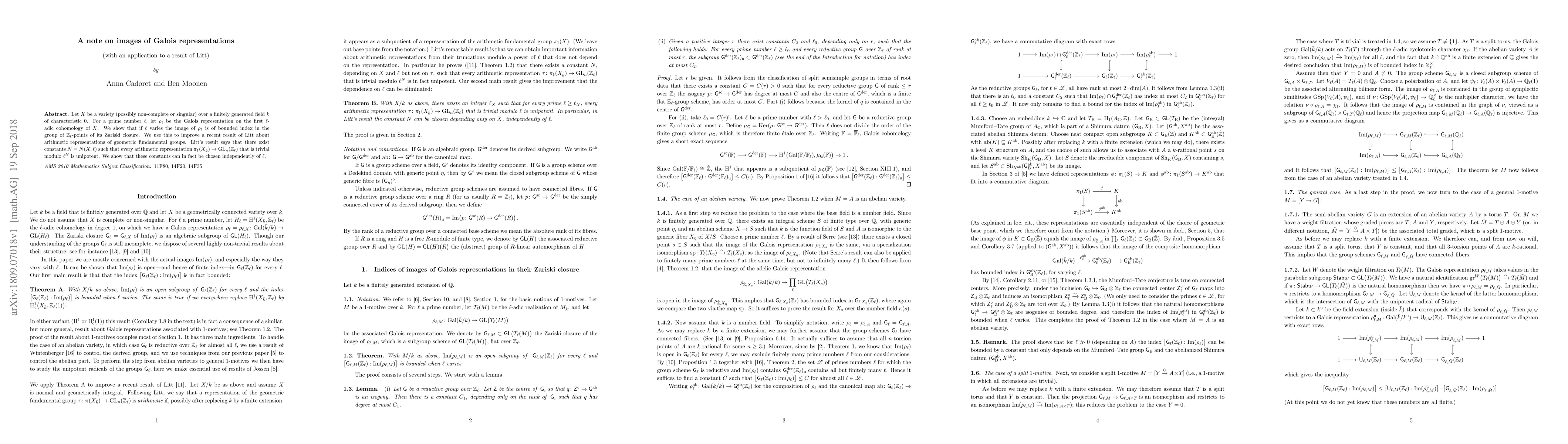 Let $X$ be a variety (possibly non-complete or singular) over a finitely generated field $k$ of characteristic $0$. For a prime number $\ell$, let $\rho_\ell$ be the Galois representation on the first $\ell$-adic cohomology of $X$. We show that if $\ell$ varies the image of $\rho_\ell$ is of bounded index in the group of $\mathbb{Z}_\ell$-points of its Zariski closure. We use this to improve a recent result of Litt about arithmetic representations of geometric fundamental groups. Litt's result says that there exist constants $N = N(X,\ell)$ such that every arithmetic representation $\pi_1(X_{\bar{k}}) \to \mathrm{GL}_n(\mathbb{Z}_\ell)$ that is trivial modulo $\ell^N$ is unipotent. We show that these constants can in fact be chosen independently of $\ell$.