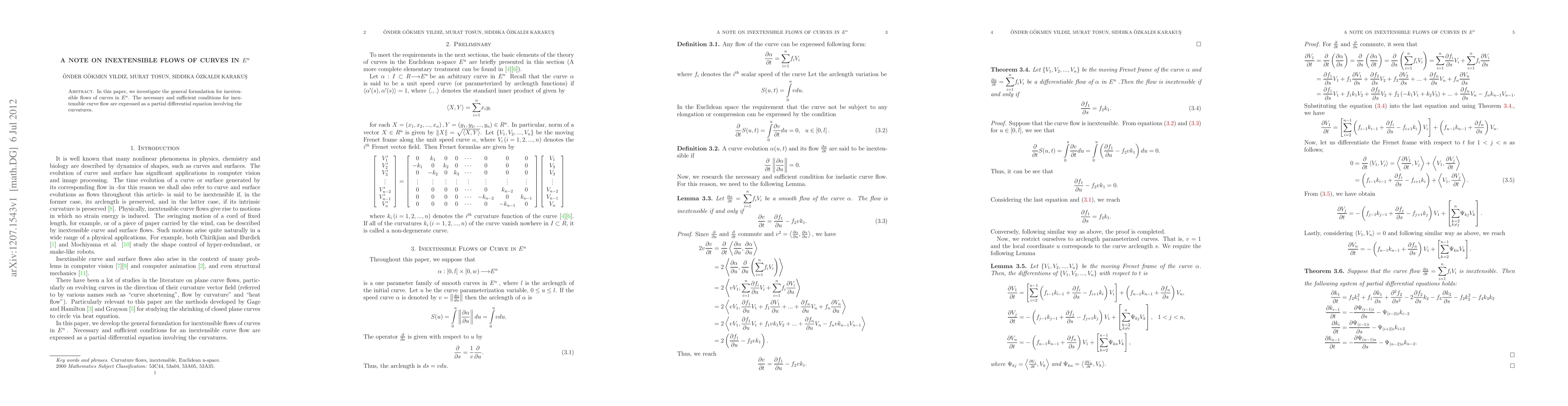 This paper investigates conditions for inextensible flows of curves in En, expressing them as a partial differential equation involving curvatures. It provides a general formulation for these types of flows.