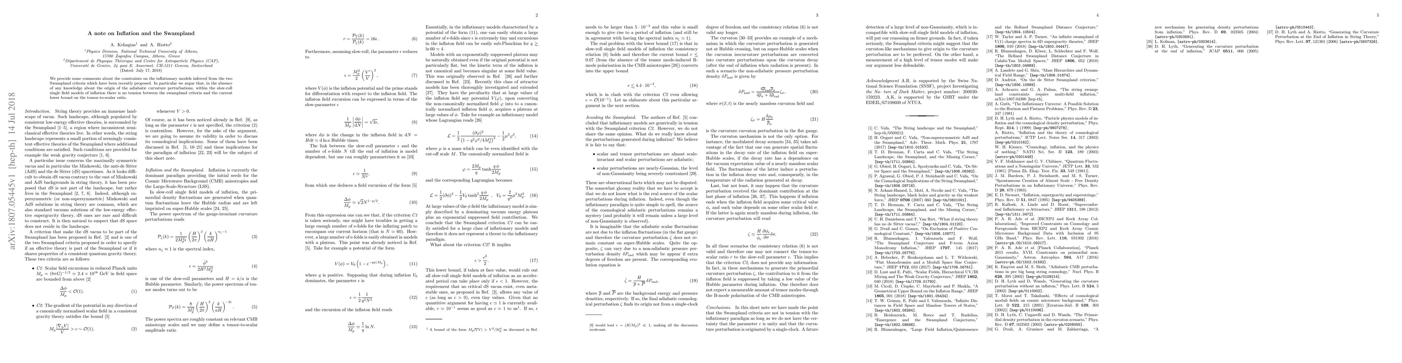 We provide some comments about the constraints on the inflationary models inferred from the two Swampland criteria which have been recently proposed. In particular we argue that, in the absence of any knowledge about the origin of the adiabatic curvature perturbations, within the slow-roll single field models of inflation there is no tension between the swampland criteria and the current lower bound on the tensor-to-scalar ratio.