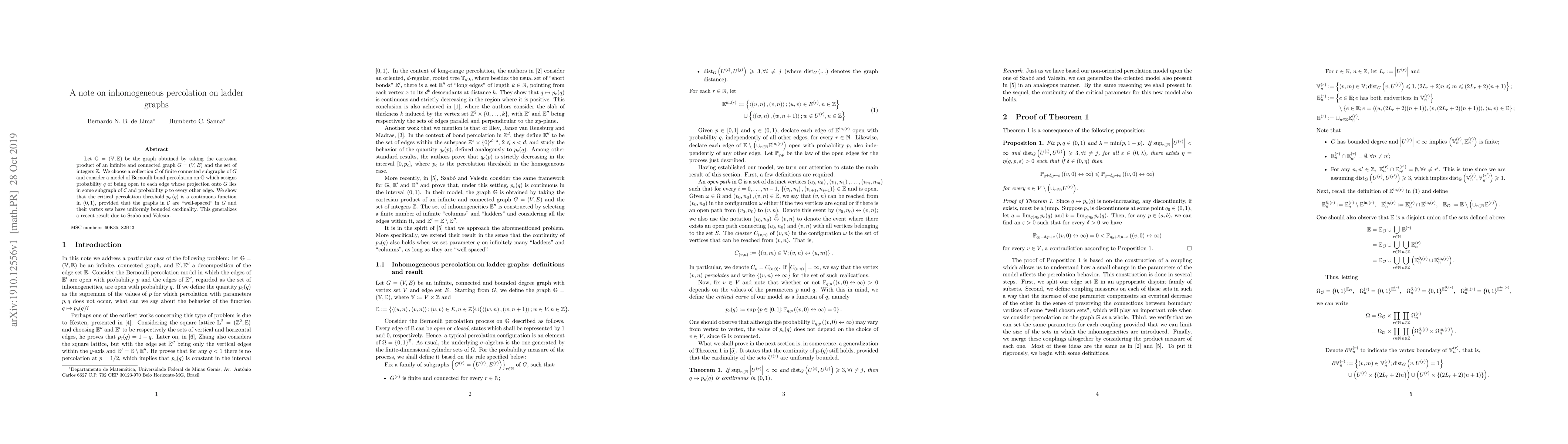 Researchers prove that a specific type of percolation model on ladder graphs has a continuous critical threshold, which generalizes previous results.