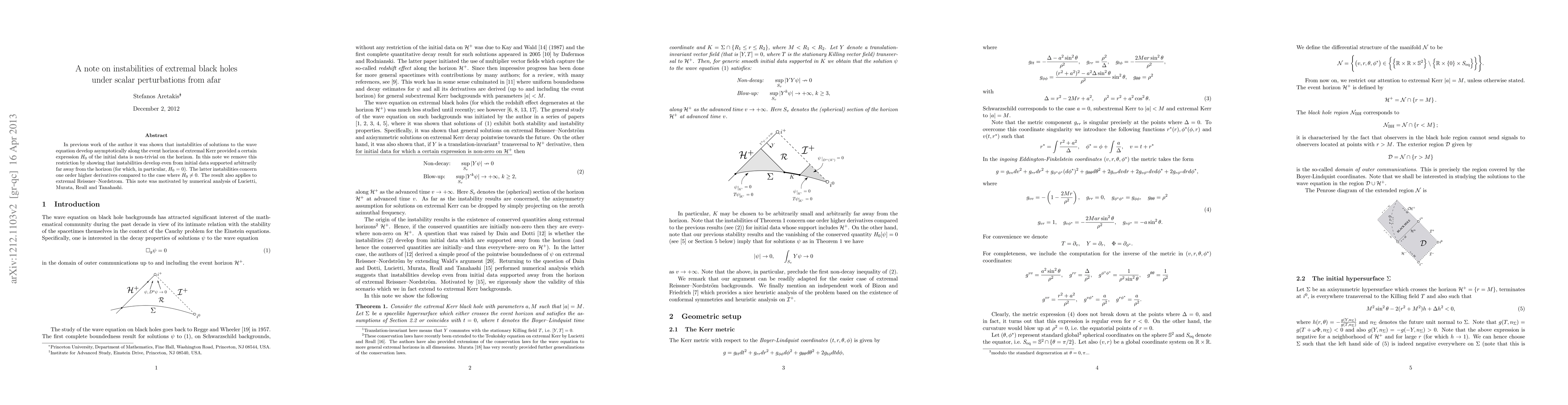 In previous work of the author it was shown that instabilities of solutions to the wave equation develop asymptotically along the event horizon of extremal Kerr provided a certain expression H of the initial data is non-trivial on the horizon. In this note we remove this restriction by showing that instabilities develop even from initial data supported arbitrarily far away from the horizon (for which, in particular, H=0). The latter instabilities concern one order higher derivatives compared to the case where H is non-zero. The result also applies to extremal Reissner-Nordstrom. This note was motivated by numerical analysis of Lucietti, Murata, Reall and Tanahashi.