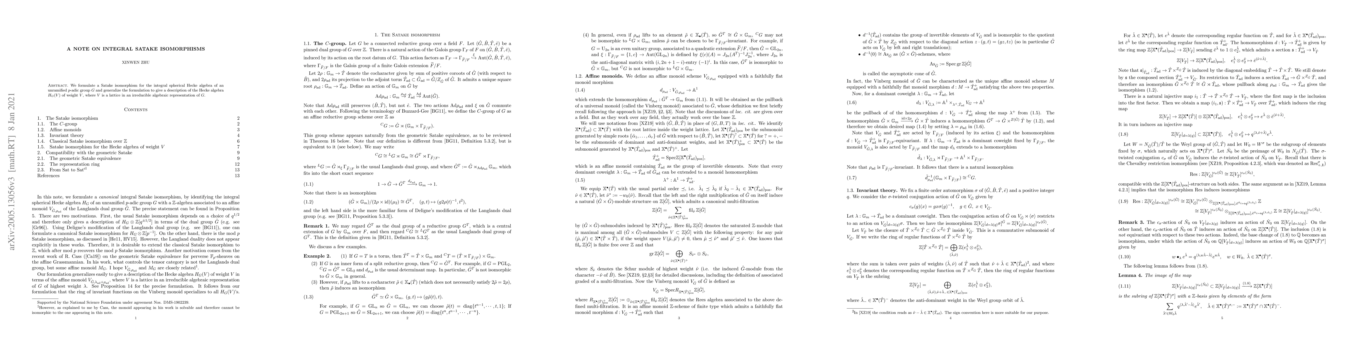 We formulate a Satake isomorphism for the integral spherical Hecke algebra of an unramified $p$-adic group $G$ and generalize the formulation to give a description of the Hecke algebra $H_G(V)$ of weight $V$, where $V$ is a lattice in an irreducible algebraic representation of $G$.