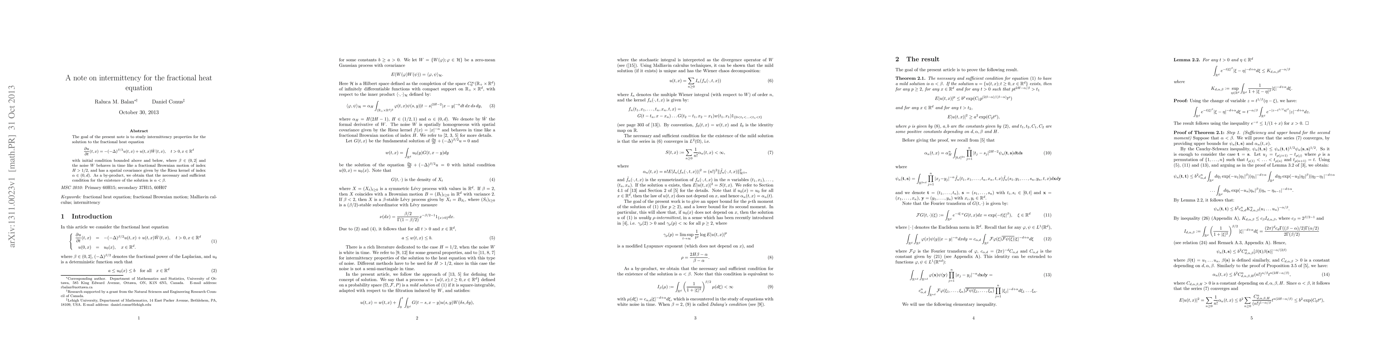 The goal of the present note is to study intermittency properties for the solution to the fractional heat equation $$\frac{\partial u}{\partial t}(t,x) = -(-\Delta)^{\beta/2} u(t,x) + u(t,x)\dot{W}(t,x), \quad t>0,x \in \bR^d$$ with initial condition bounded above and below, where $\beta \in (0,2]$ and the noise $W$ behaves in time like a fractional Brownian motion of index $H>1/2$, and has a spatial covariance given by the Riesz kernel of index $\alpha \in (0,d)$. As a by-product, we obtain that the necessary and sufficient condition for the existence of the solution is $\alpha<\beta$.