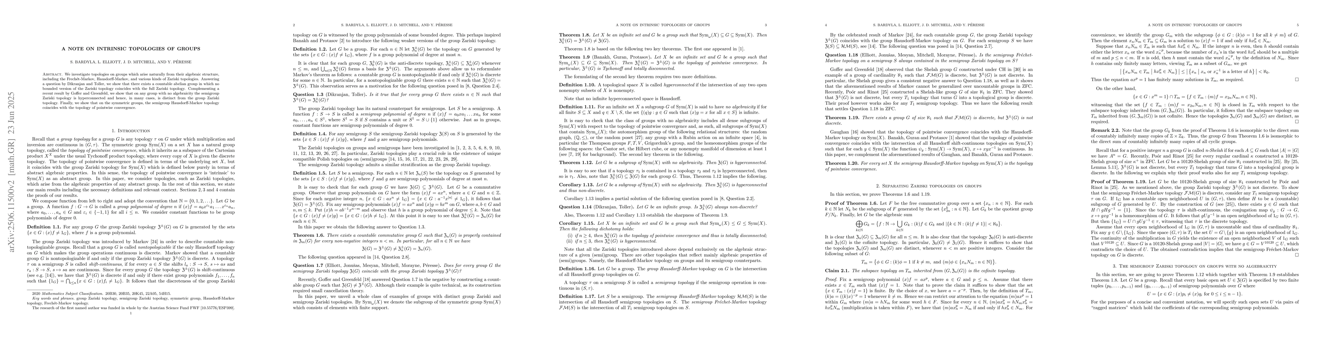 We investigate topologies on groups which arise naturally from their algebraic structure, including the Frech\'et-Markov, Hausdorff-Markov, and various kinds of Zariski topologies. Answering a question by Dikranjan and Toller, we show that there exists a countable abelian group in which no bounded version of the Zariski topology coincides with the full Zariski topology. Complementing a recent result by Goffer and Greenfeld, we show that on any group with no algebraicity the semigroup Zariski topology is hyperconnected and hence, in many cases, is distinct from the group Zariski topology. Finally, we show that on the symmetric groups, the semigroup Hausdorff-Markov topology coincides with the topology of pointwise convergence.