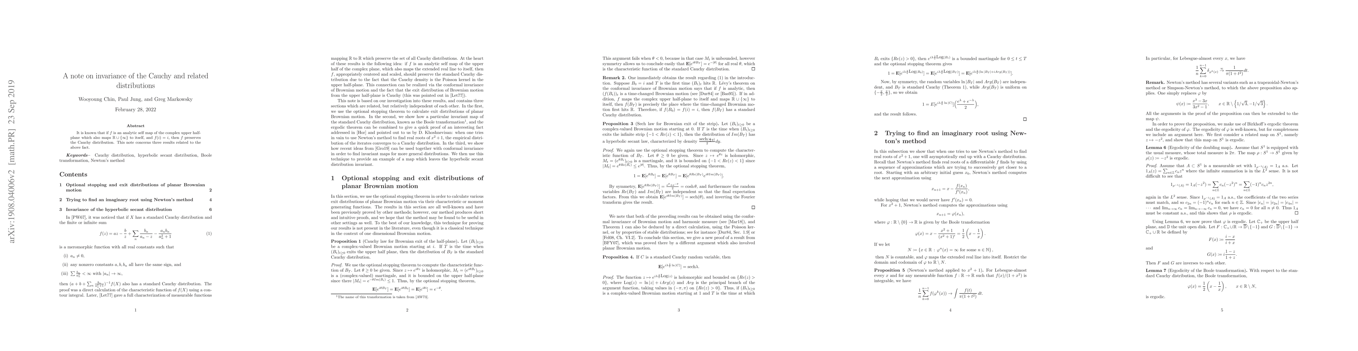 This paper explores three results related to the preservation of the Cauchy distribution under specific analytic functions mapping the complex upper half-plane to itself, with the condition that they map the real line to itself and fix point i.