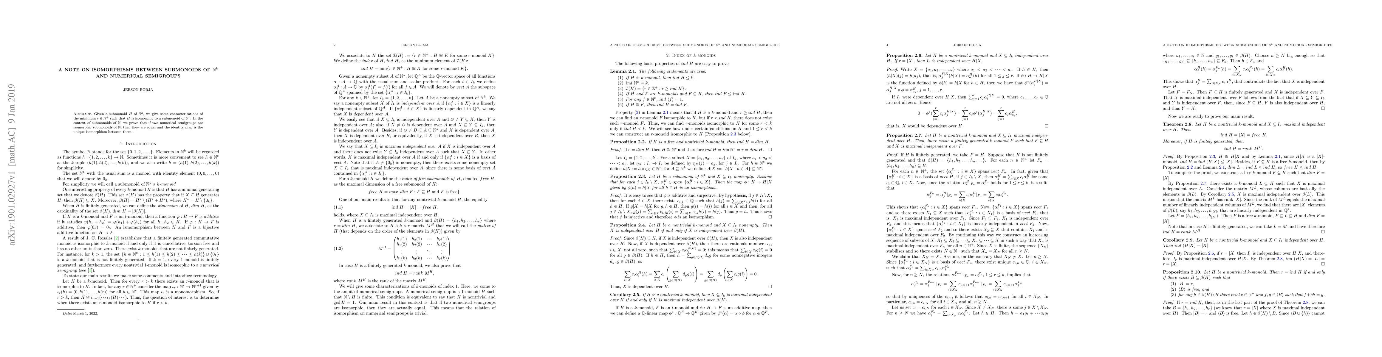 Given a submonoid $H$ of $\mathbb N^k$, we give some characterizations of the minimum $r\in \mathbb N^+$ such that $H$ is isomorphic to a submonoid of $\mathbb N^r$. In the context of submonoids of $\mathbb N$, we prove that if two numerical semigroups are isomorphic submonoids of $\mathbb N$, then they are equal and the identity map is the unique isomorphism between them.