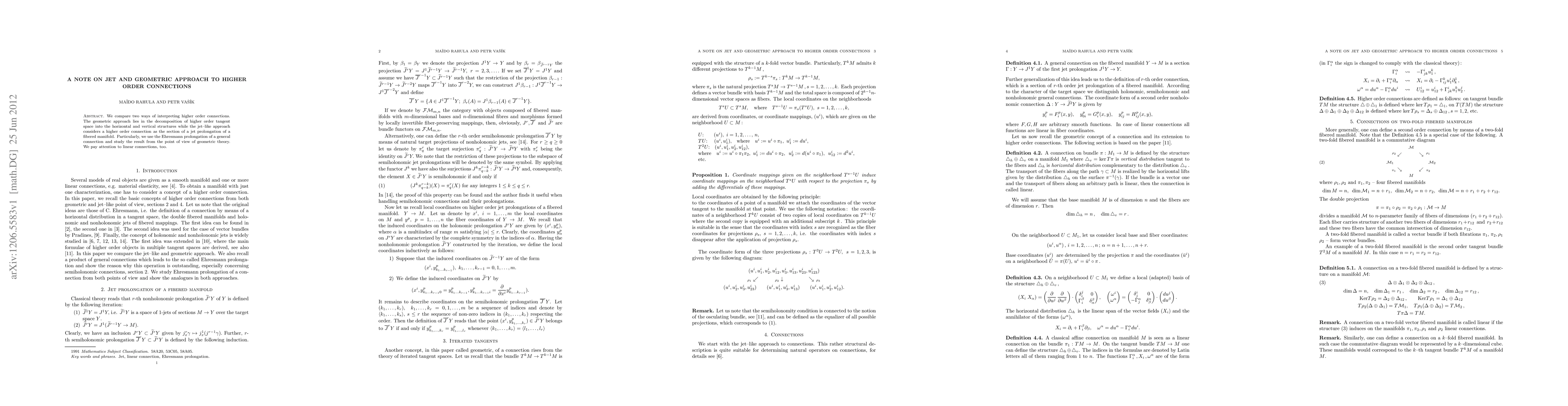 We compare two ways of interpreting higher order connections. The geometric approach lies in the decomposition of higher order tangent space into the horizontal and vertical structures while the jet--like approach considers a higher order connection as the section of a jet prolongation of a fibered manifold. Particularly, we use the Ehresmann prolongation of a general connection and study the result from the point of view of geometric theory. We pay attention to linear connections, too.