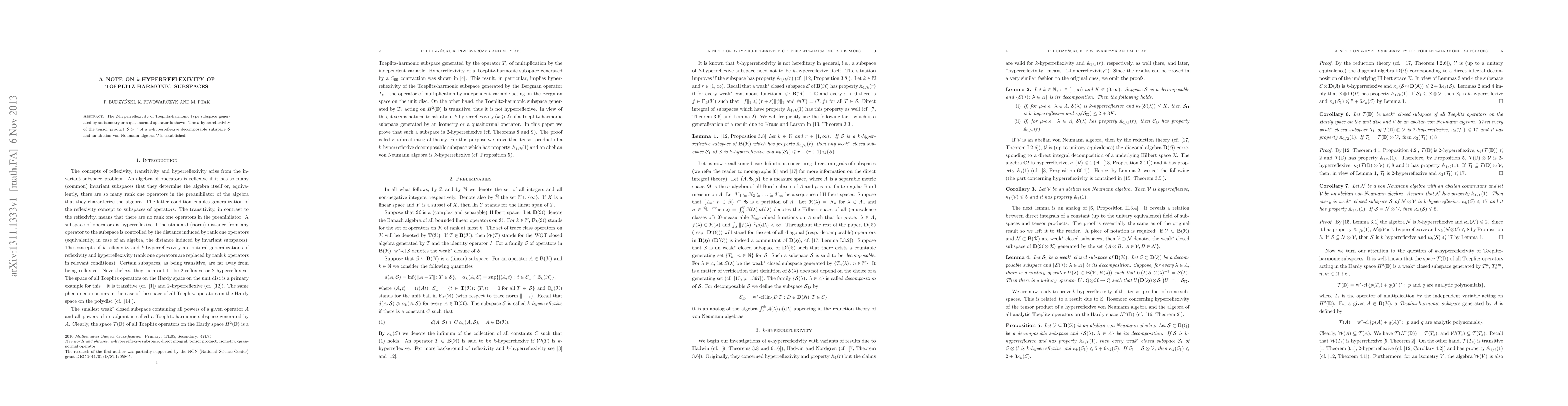 The 2-hyperreflexivity of Toeplitz-harmonic type subspace generated by an isometry or a quasinormal operator is shown. The $k$-hyperreflexivity of the tensor product $\mathcal{S}\otimes \mathcal{V}$ of a $k$-hyperreflexive decomposable subspace $\mathcal{S}$ and an abelian von Neumann algebra $\mathcal{V}$ is established.