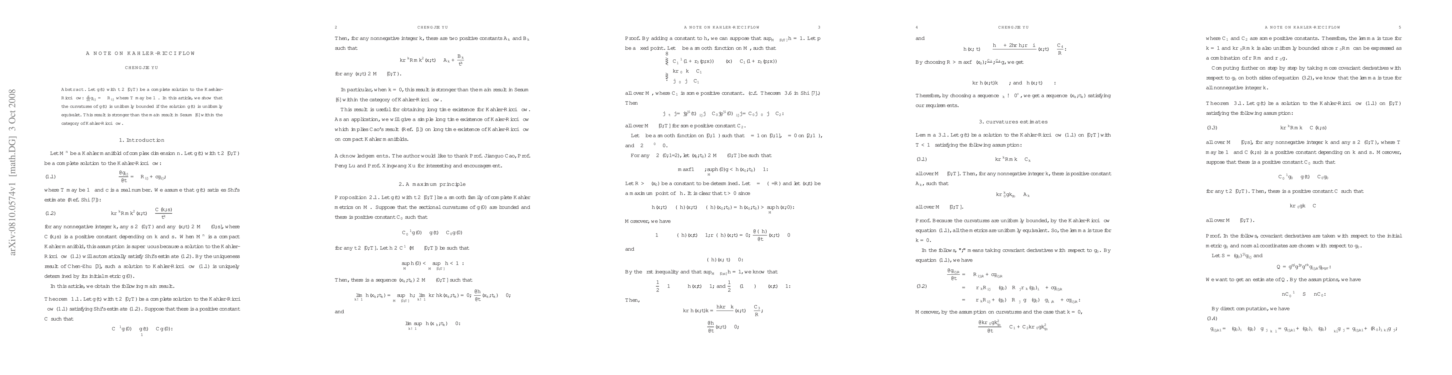 Let $g(t)$ with $t\in [0,T)$ be a complete solution to the Kaehler-Ricci flow: $\frac{d}{dt}g_{i\bar j}=-R_{i\bar j}$ where $T$ may be $\infty$. In this article, we show that the curvatures of $g(t)$ is uniformly bounded if the solution $g(t)$ is uniformly equivalet. This result is stronger than the main result in \v{S}e\v{s}um \cite{sesum} within the category of K\"ahler-Ricci flow.