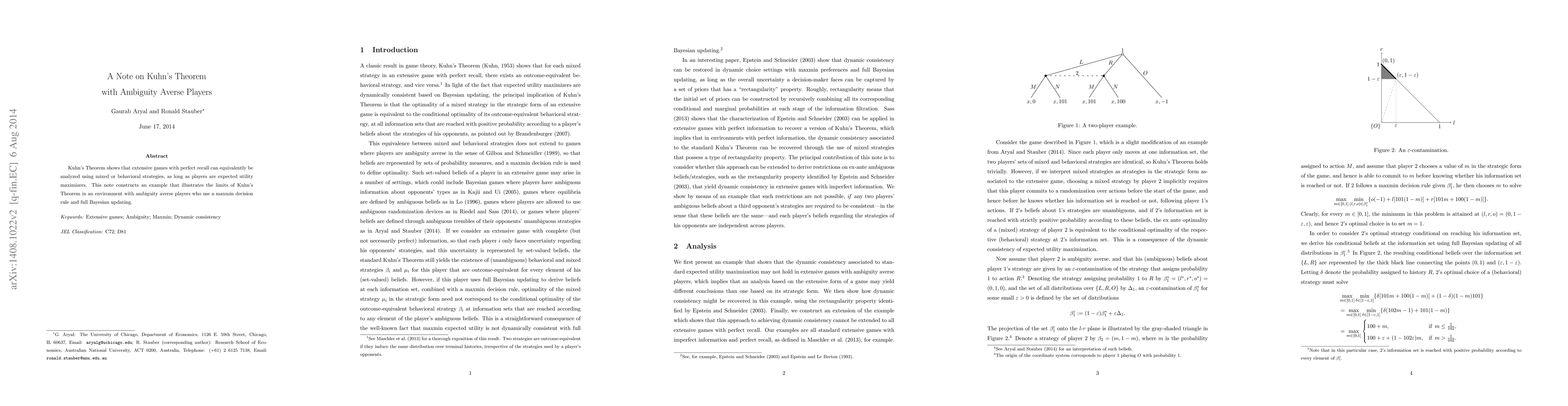 This paper examines Kuhn's Theorem in the context of ambiguity averse players, demonstrating that the theorem's applicability is limited when players follow a maxmin decision rule and full Bayesian updating instead of being expected utility maximizers. It constructs an example to illustrate these limitations.