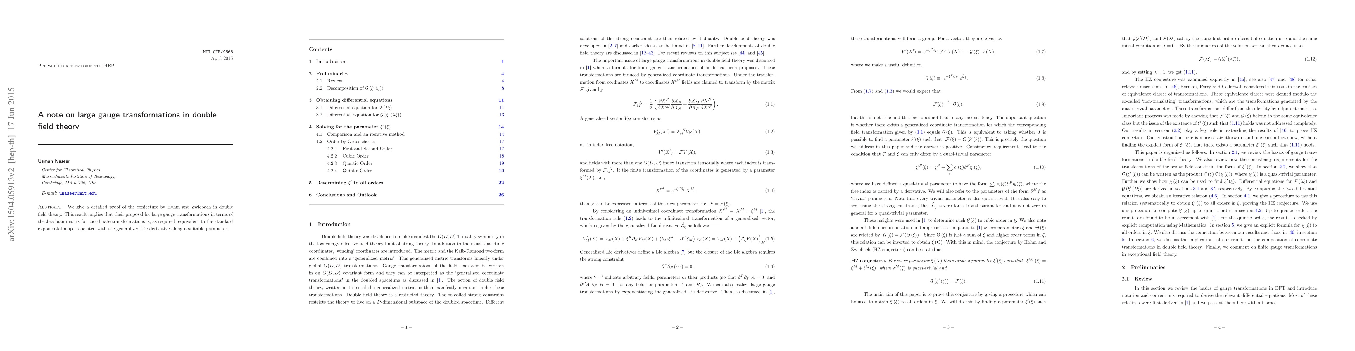 Summary: This paper provides a rigorous proof confirming Hohm and Zwiebach's conjecture regarding large gauge transformations in double field theory, demonstrating their equivalence to the standard exponential map via the generalized Lie derivative.