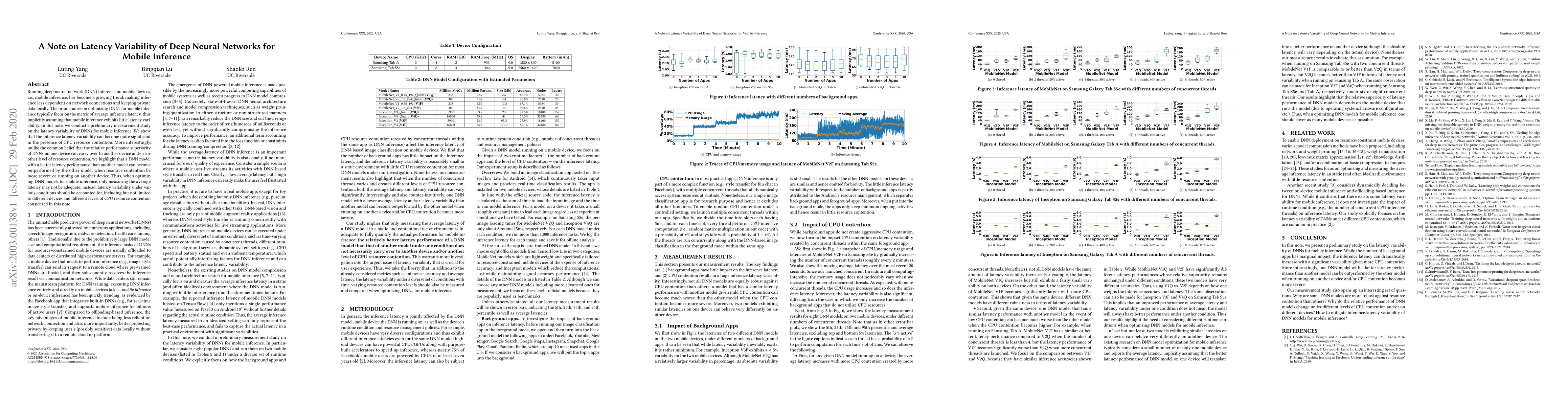 This paper explores the latency variability of deep neural networks (DNNs) for mobile inference, revealing significant variability under CPU resource contention. It emphasizes that average latency measurements may not suffice, advocating for consideration of latency variability across different devices and resource conditions.