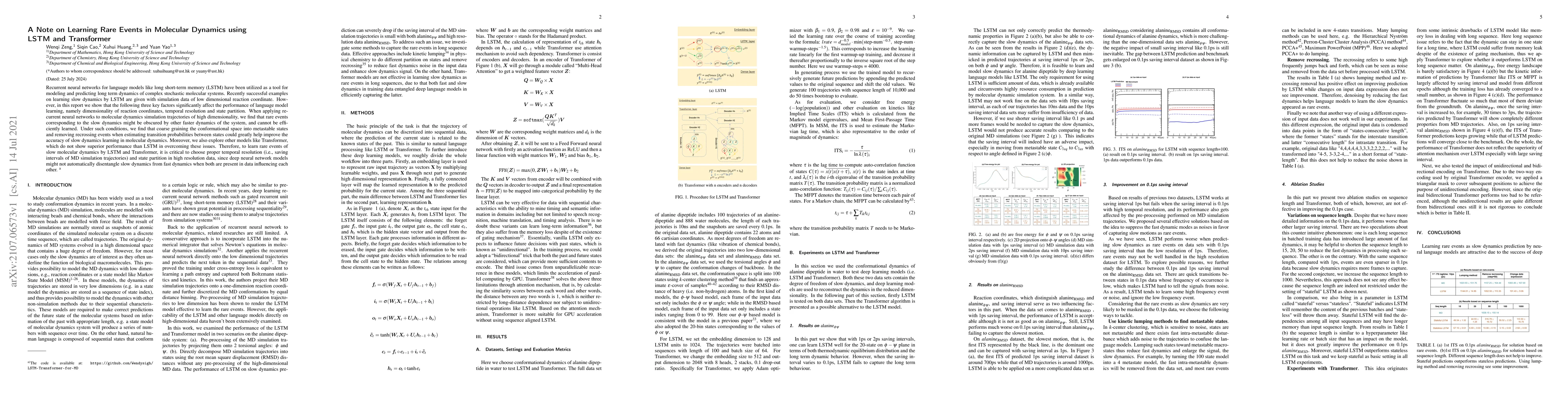 This paper investigates the use of LSTM and Transformer models for learning rare events in high-dimensional molecular dynamics simulations. It highlights that proper temporal resolution and state partition are crucial for accurately capturing slow dynamics, as LSTM and Transformer models struggle to distinguish slow dynamics from faster dynamics in complex systems.